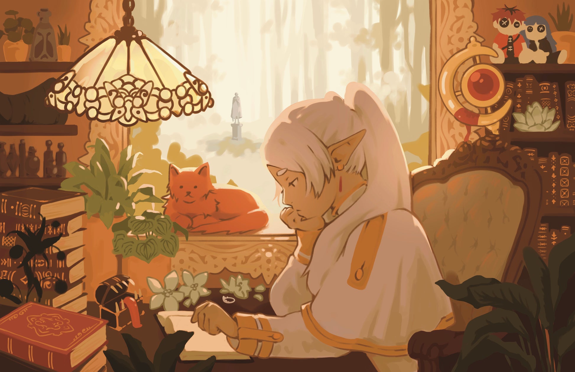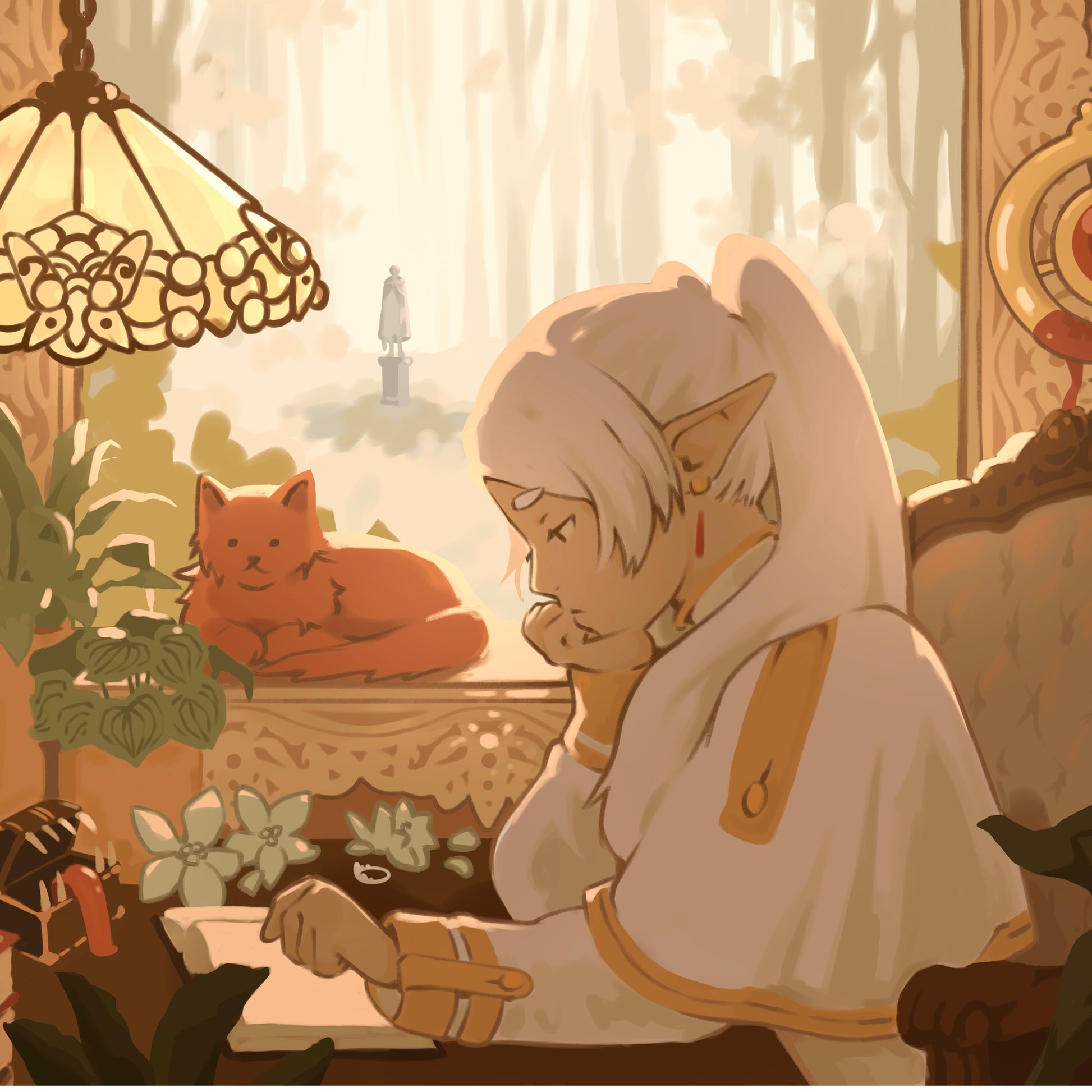 Poster-sized print of Frieren drawn in the style of the infamous lofi girl. Printed on heavy cardstock with a satin finish