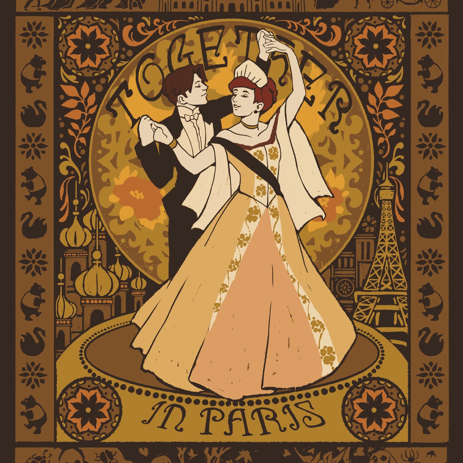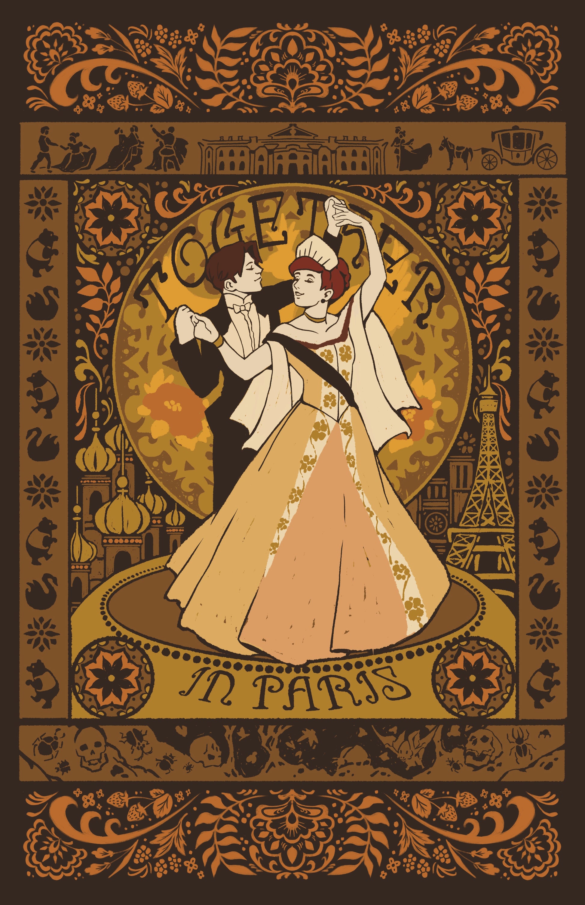 Poster-sized print of my "Together in Paris" tapestry design. Printed on heavy cardstock with a satin finish