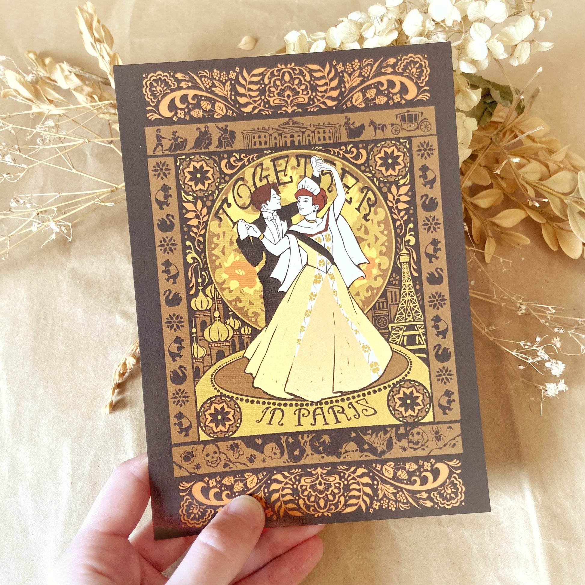 Photo-sized print of my "Together in Paris" tapestry design. Printed on heavy cardstock with a satin finish