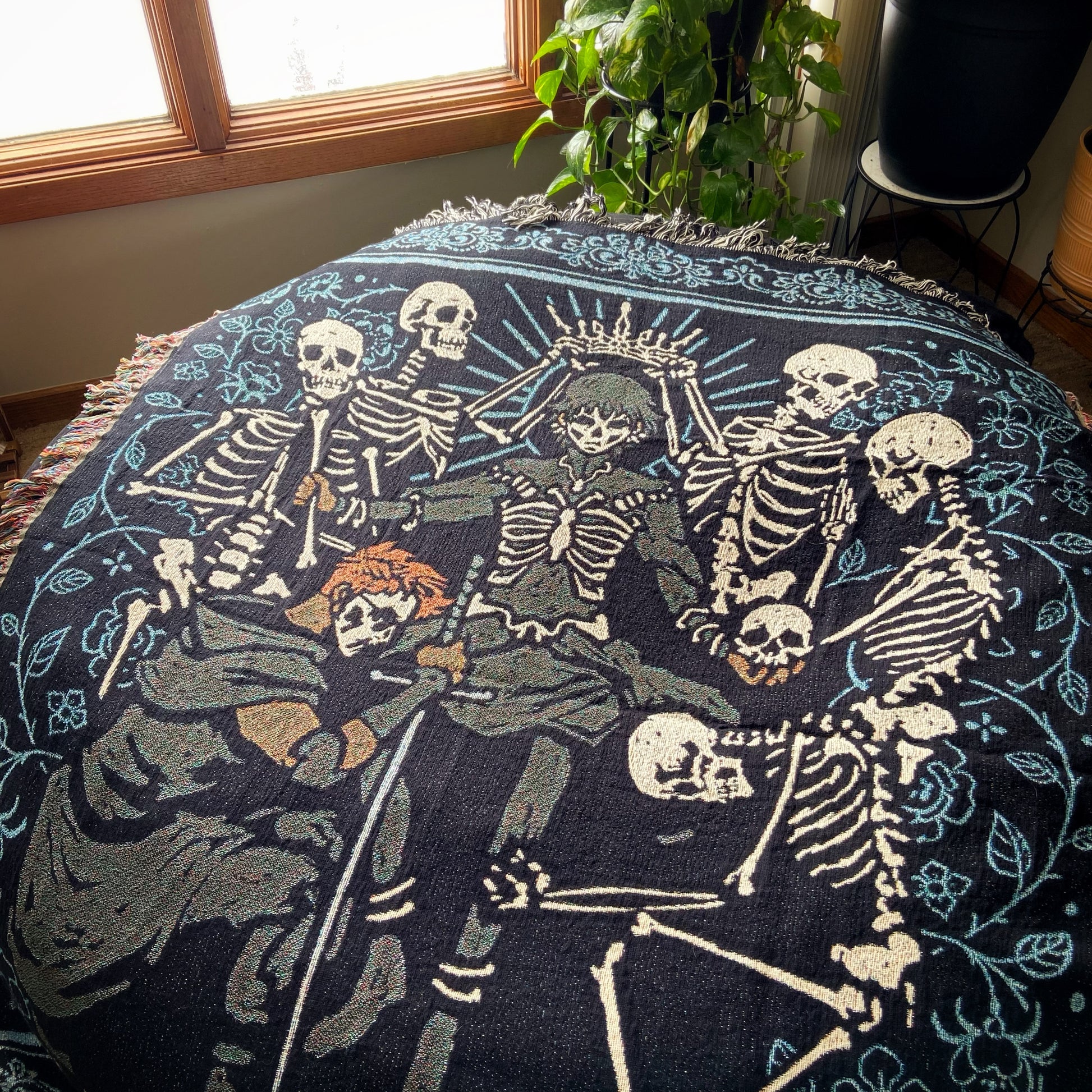 Woven blanket / tapestry, 50x60," 100% cotton, semi-soft. Shipping takes 2-3 weeks after purchase, depending on production time.