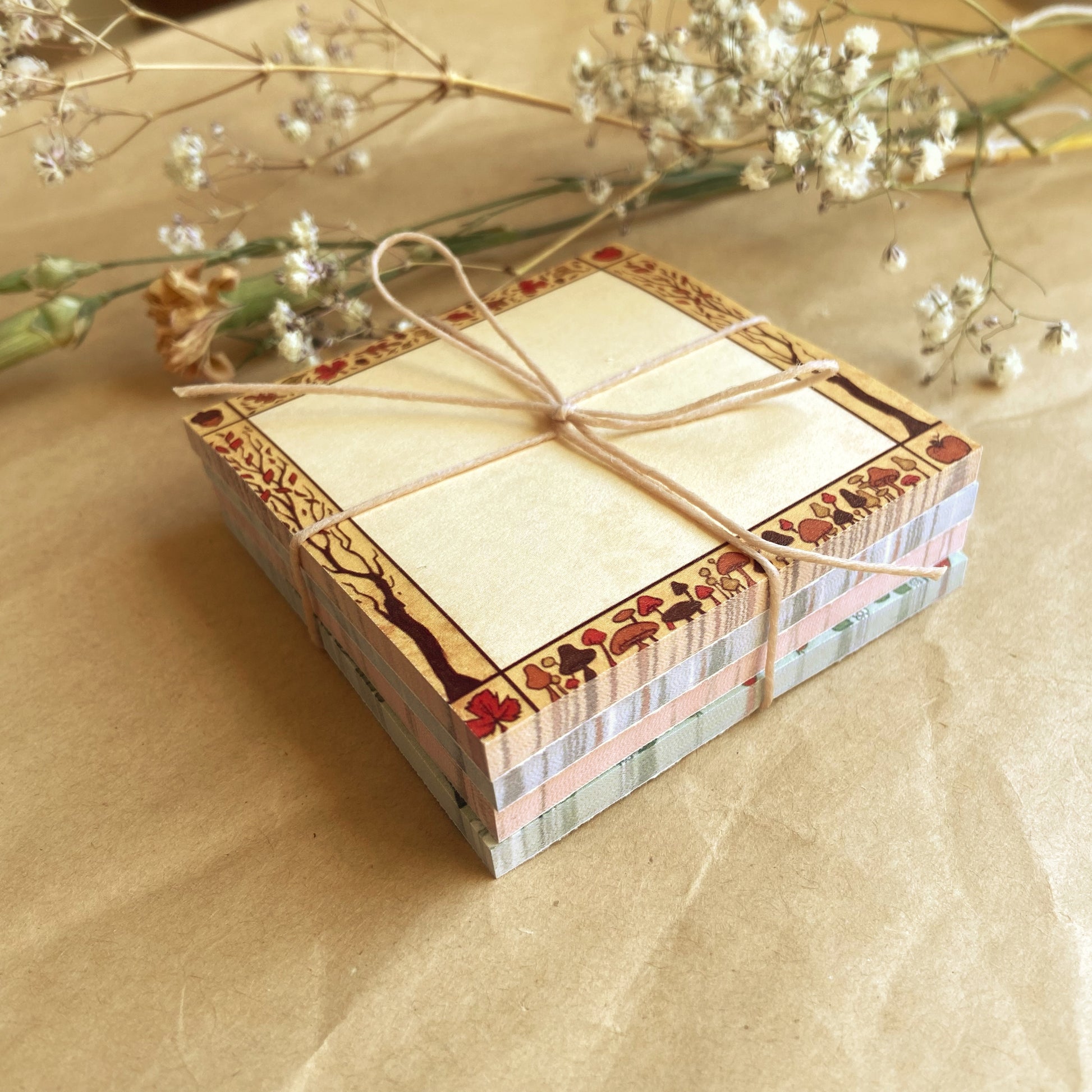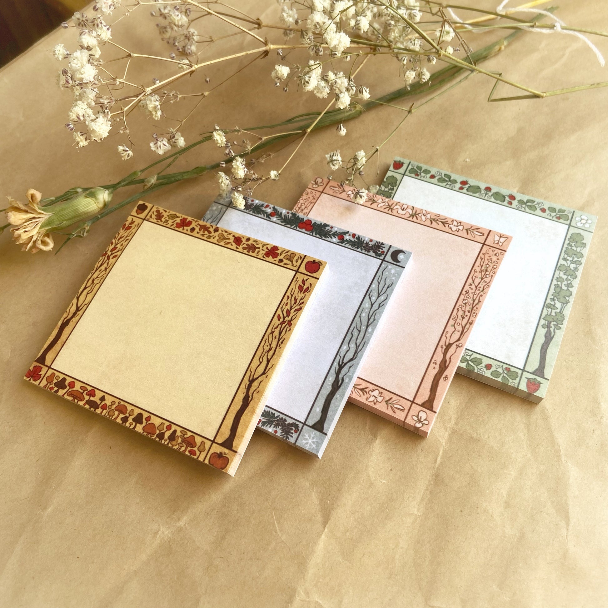 Set of four sticky notes inspired by the seasons. Printing was a little off-center, so this set is discounted.